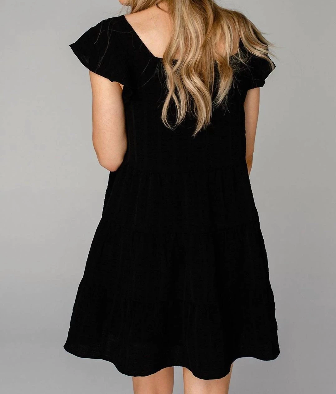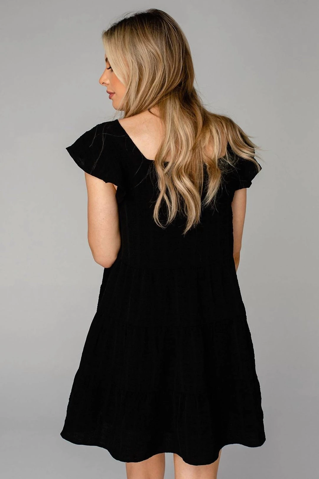 Features a square neckline, flutter sleeves, loose fit, and lined! Product Details – Fit – รย Theรย Delilah Dressรย fits true to size.Length – รย The length of this dress rest above the knee.Bust – รย Not Fittedรย -รย comfortable room throughout midsection.Waist – รย Relaxed fitHips – รย Relaxed fitFabric – รย Fabric contains no stretch.