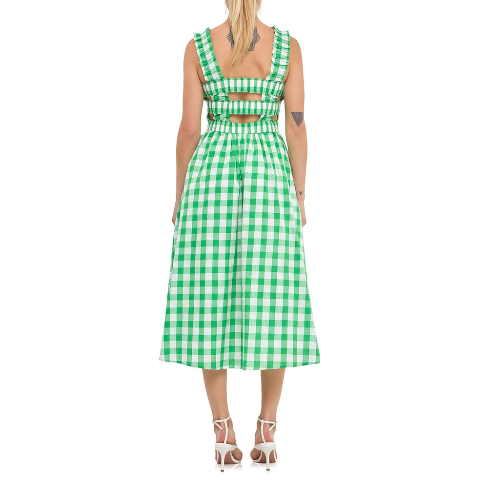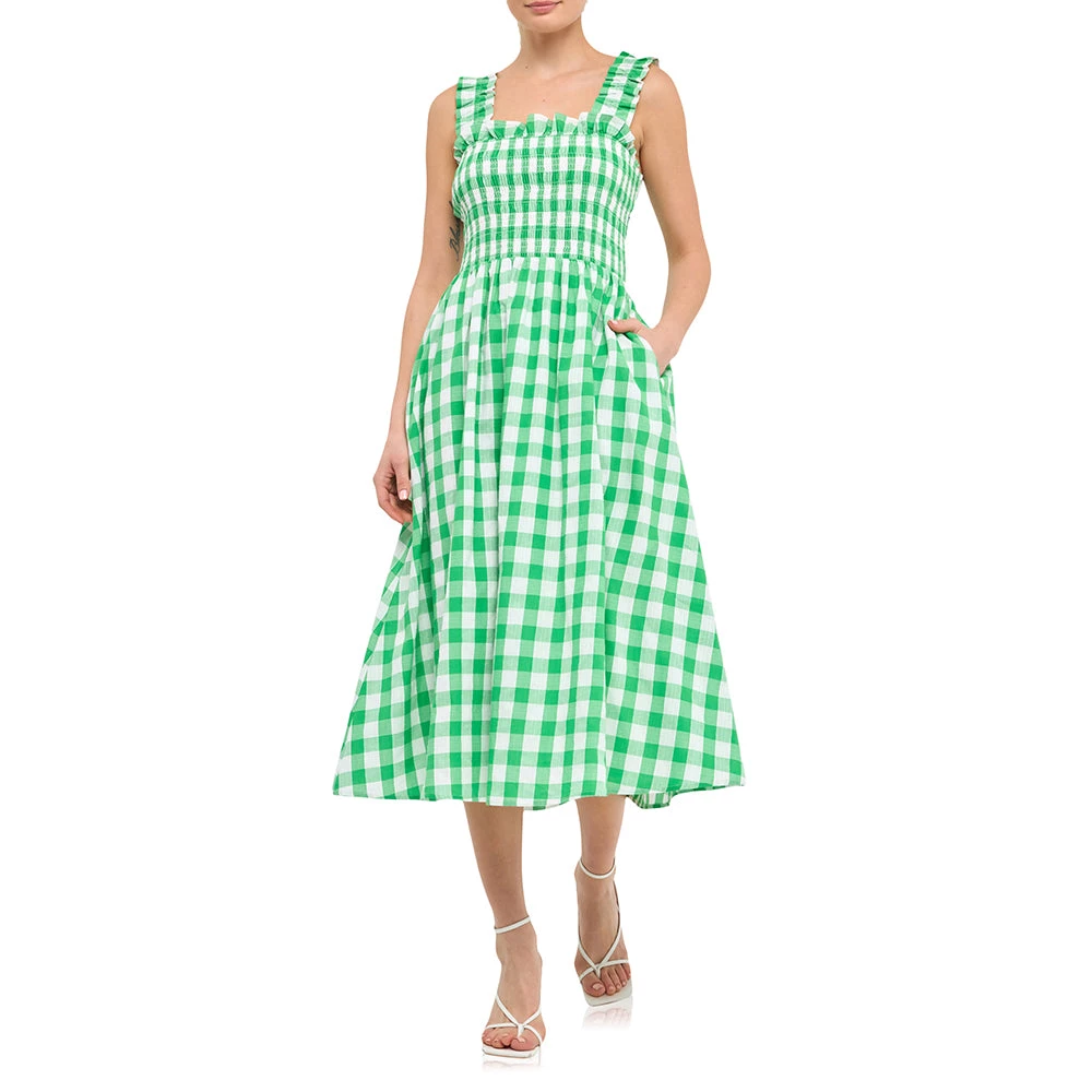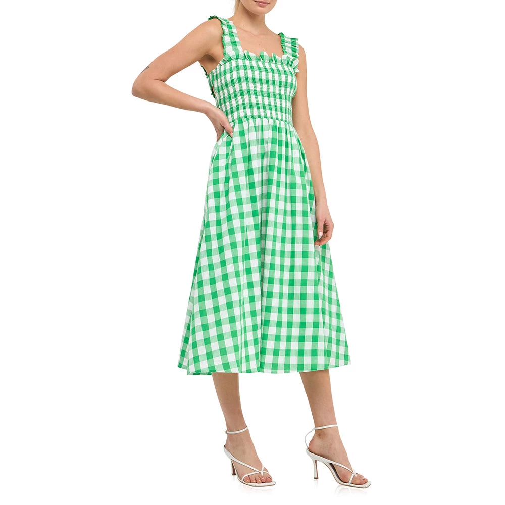 Wholesale 💯 ENGLISH FACTORY 👩 women Check Print Smocked 👗 Dress ✨