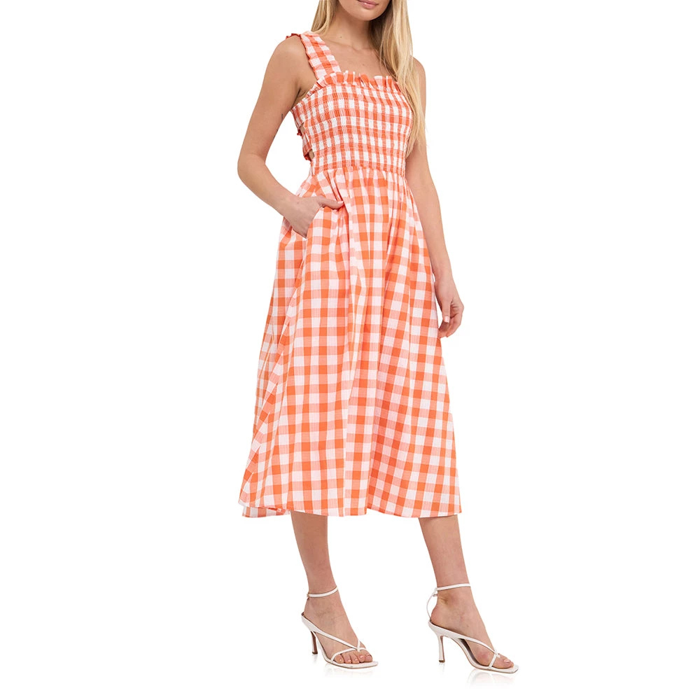 Cheapest โค๏ธ ENGLISH FACTORY ๐ฉ women Check Print Smocked ๐ Dress ๐