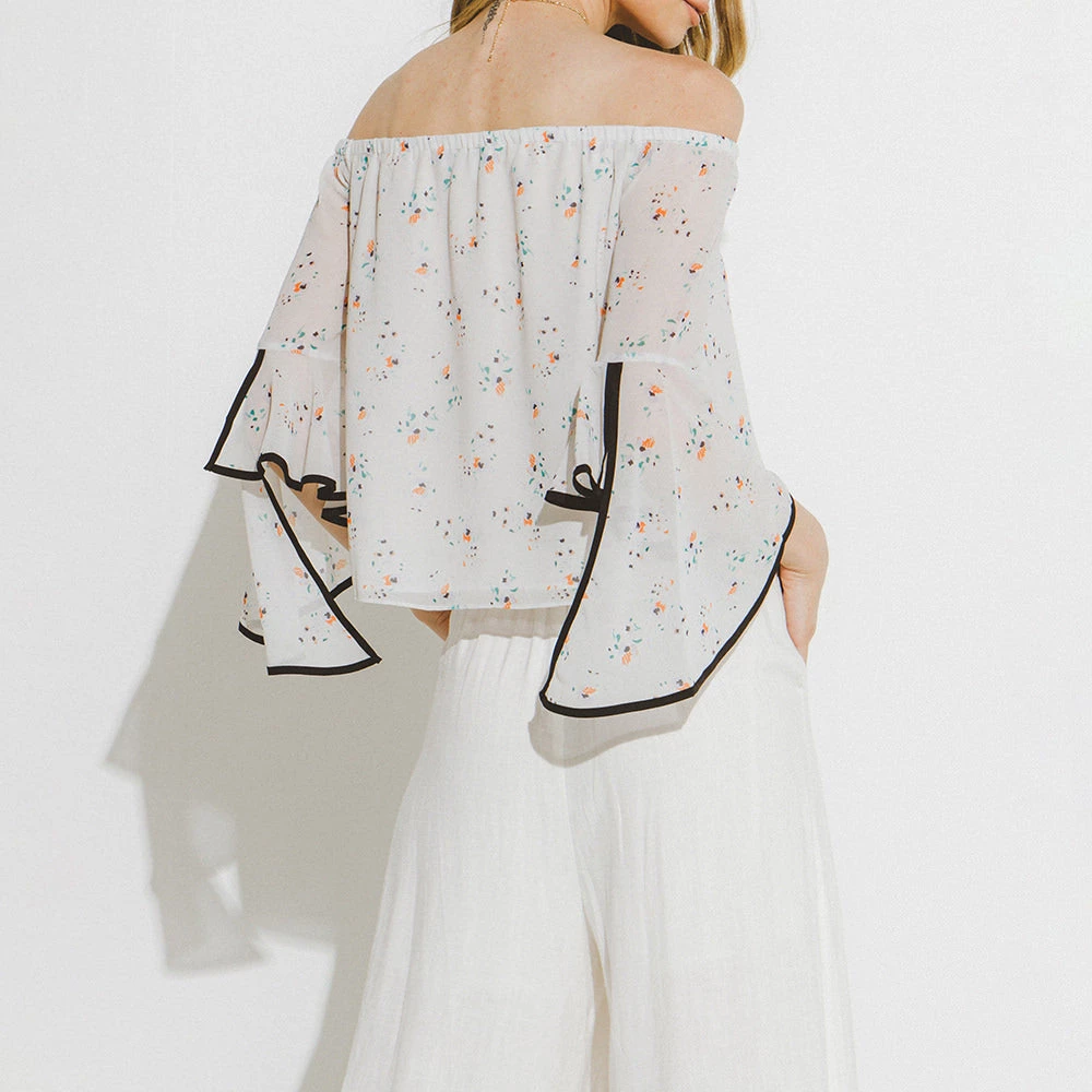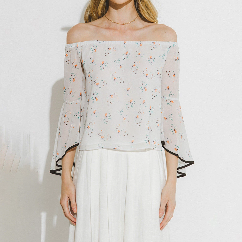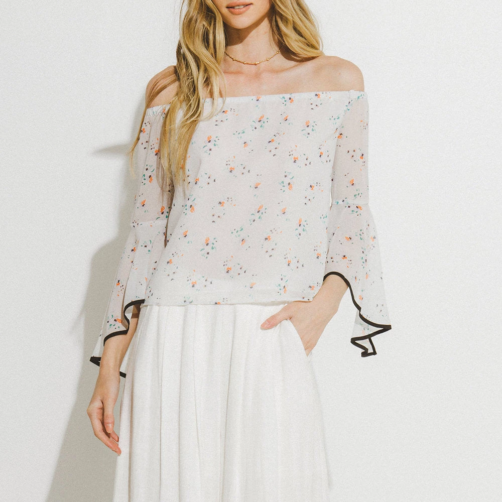 Outlet ๐ English Factory ๐ฉ women Daisy Sketch Printed Off the Shoulder Top ๐
