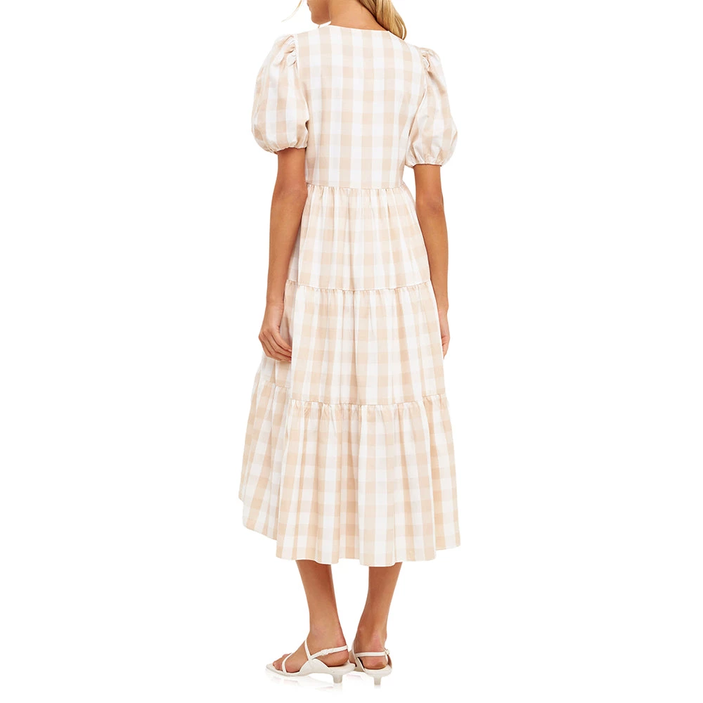 Best deal ✔️ ENGLISH FACTORY 👩 women Gingham Puff Sleeve Tiered Midi 🔥