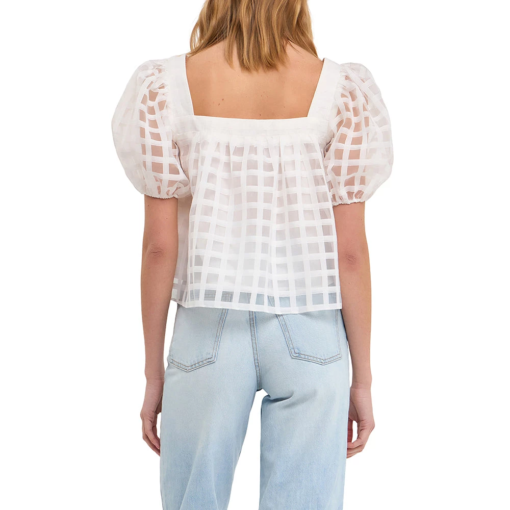 Hot Sale ๐งจ ENGLISH FACTORY ๐ฉ women Organza Gridded Square Neck Crop Top ๐งจ