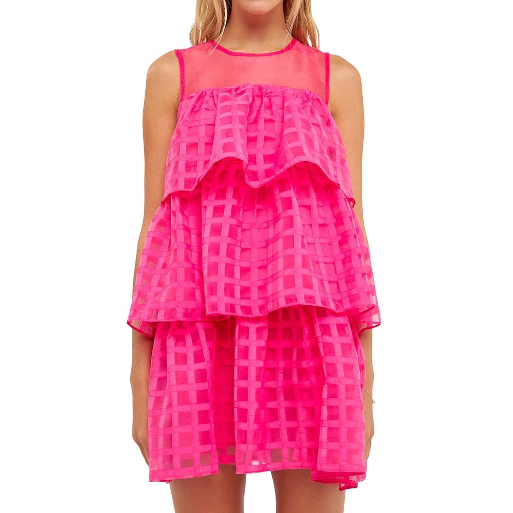 Top 10 🌟 ENGLISH FACTORY 👩 women Organza Gridded Tiered Sleeveless Mini ⌛