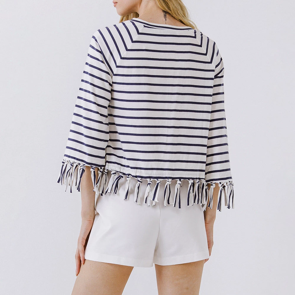 Hot Sale 🛒 English Factory 👩 women Strip Top with Fringe Detail 🤩