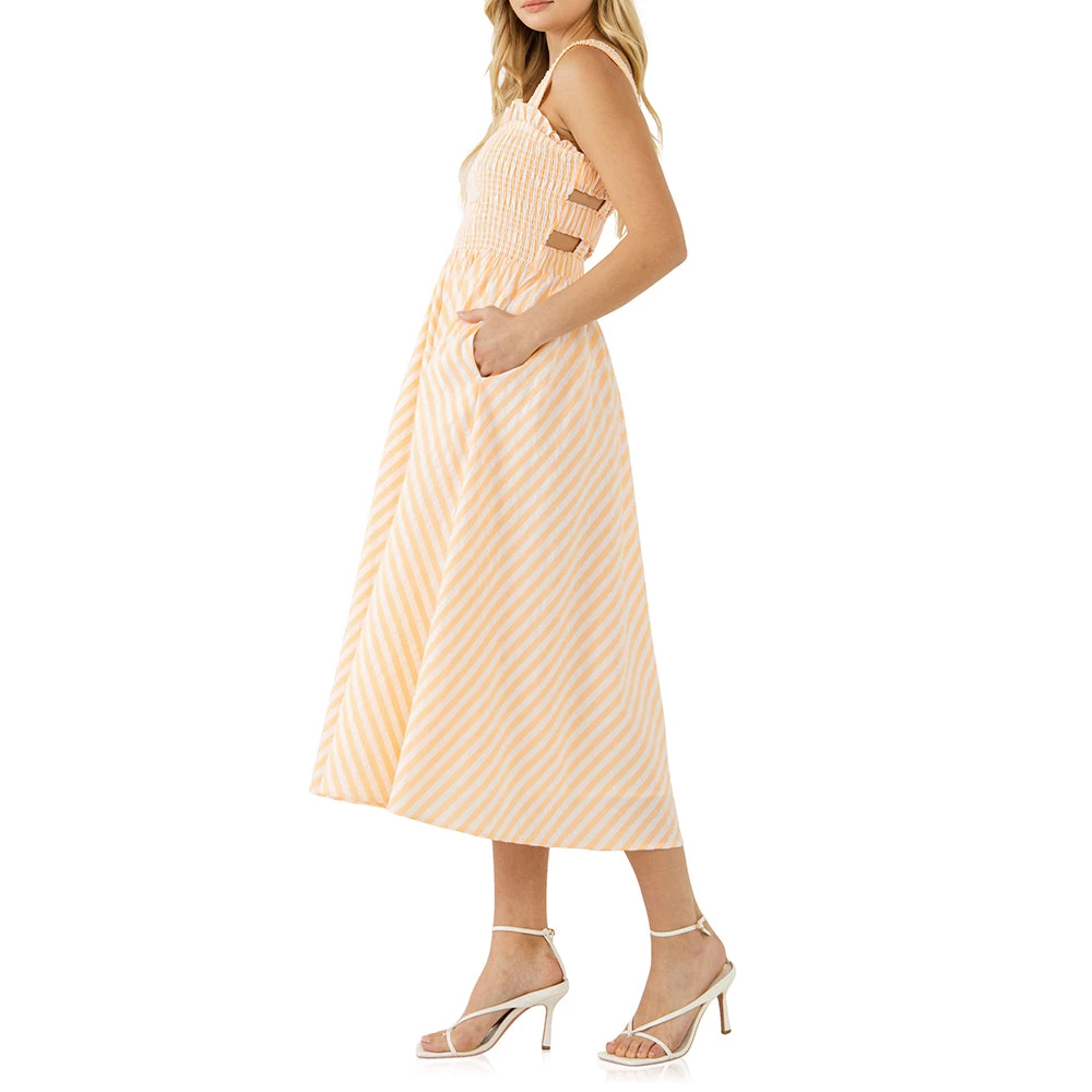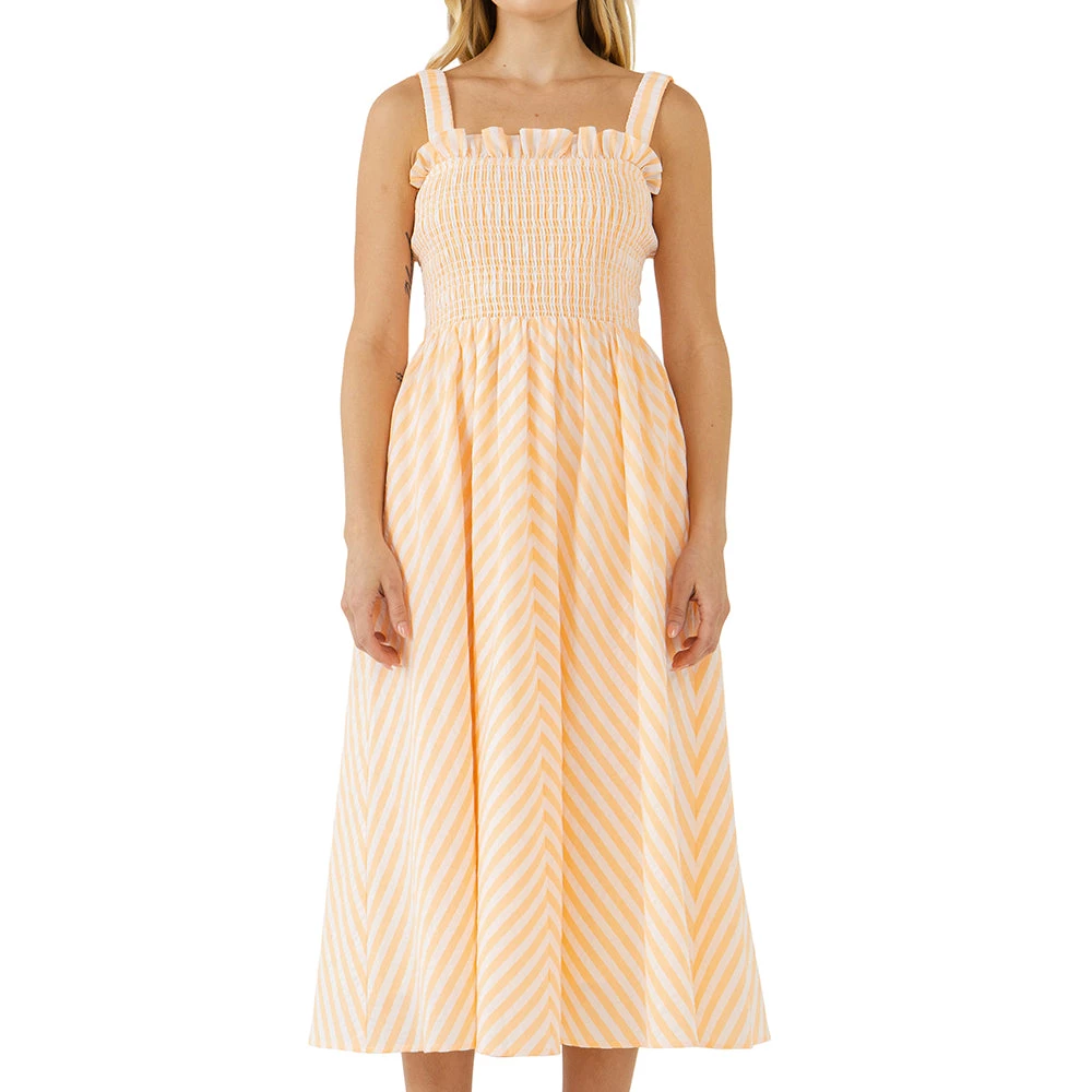New โค๏ธ English Factory ๐ฉ women Striped Smocked Midi ๐ Dress ๐งจ