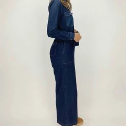 New 🛒 Frnch 👩 women Sandrine Woven Jumpsuit in Blue Jean 😀