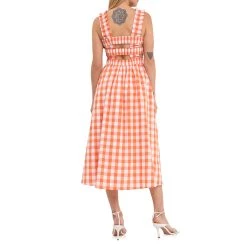 Best Sale 😀 ENGLISH FACTORY 👩 women Gingham Tiered Midi 👗 Dress with Bow Tie Sleeves 🤩