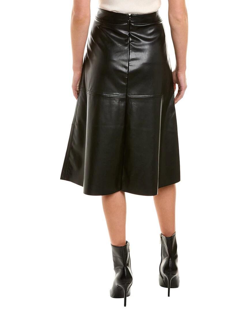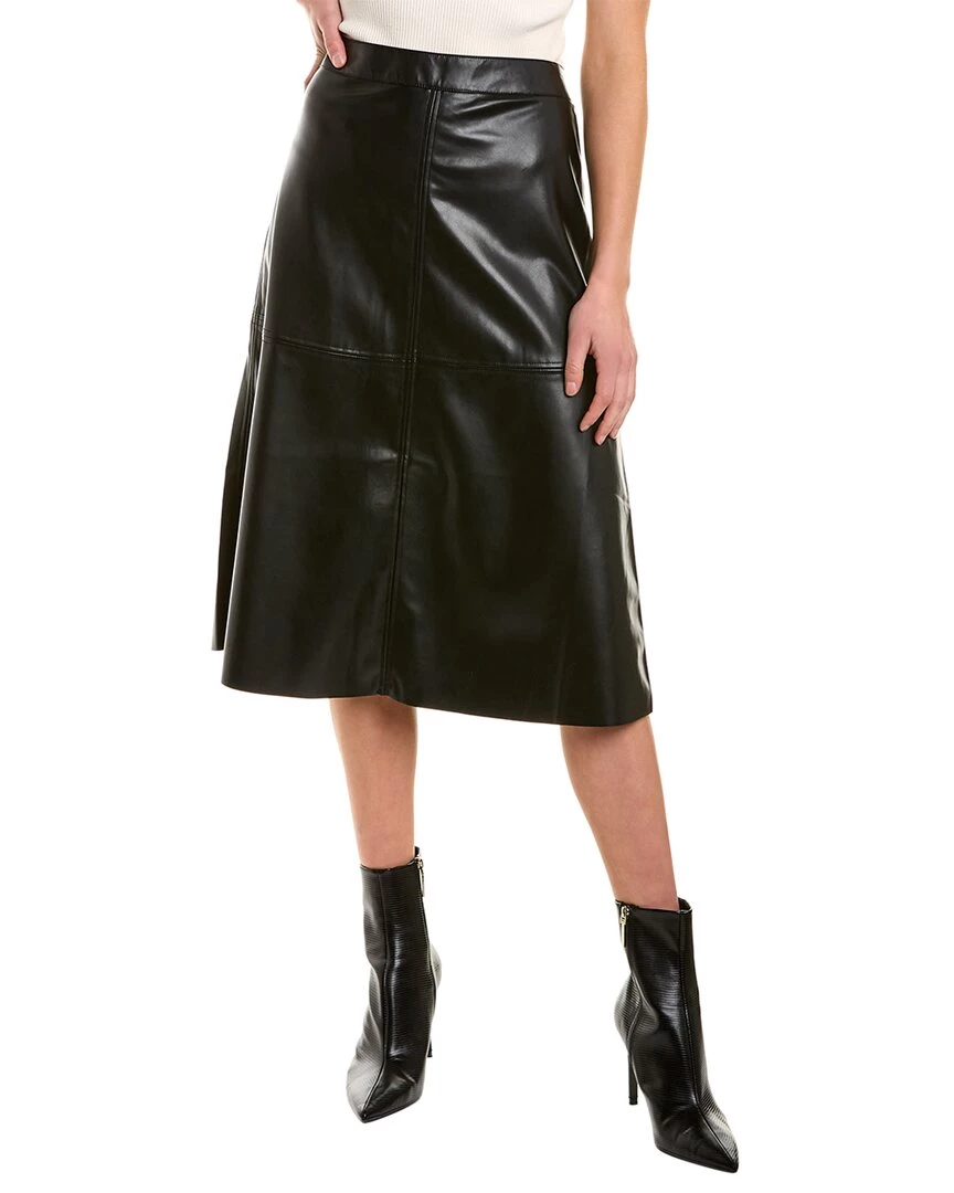 - A-Line Midi Skirt In Black With Faux Leather Construction And Raw Edge Hem