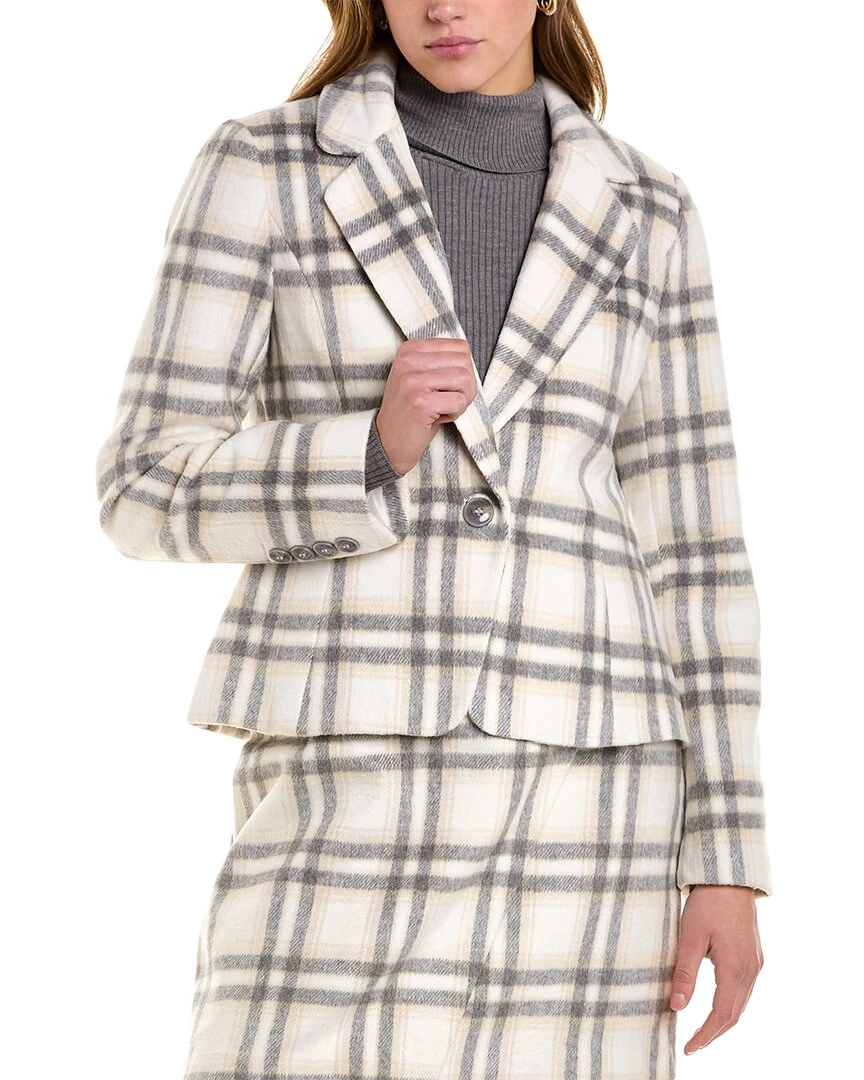 - Plaid Blazer In Grey/Cream With Notched Lapel And Button Accents At Cuffs